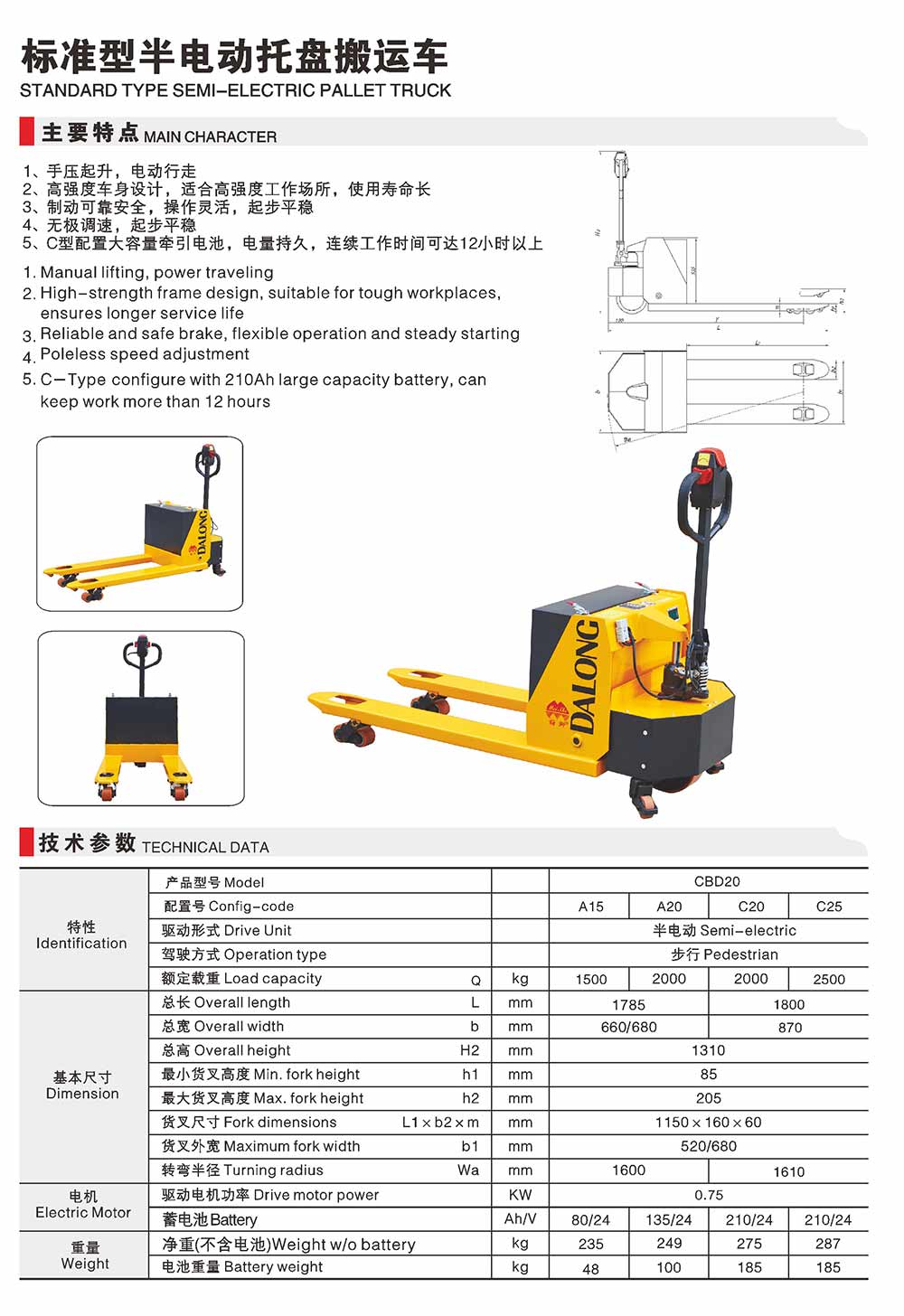 CBDA標(biāo)準(zhǔn)型半電動(dòng)托盤搬運(yùn)車